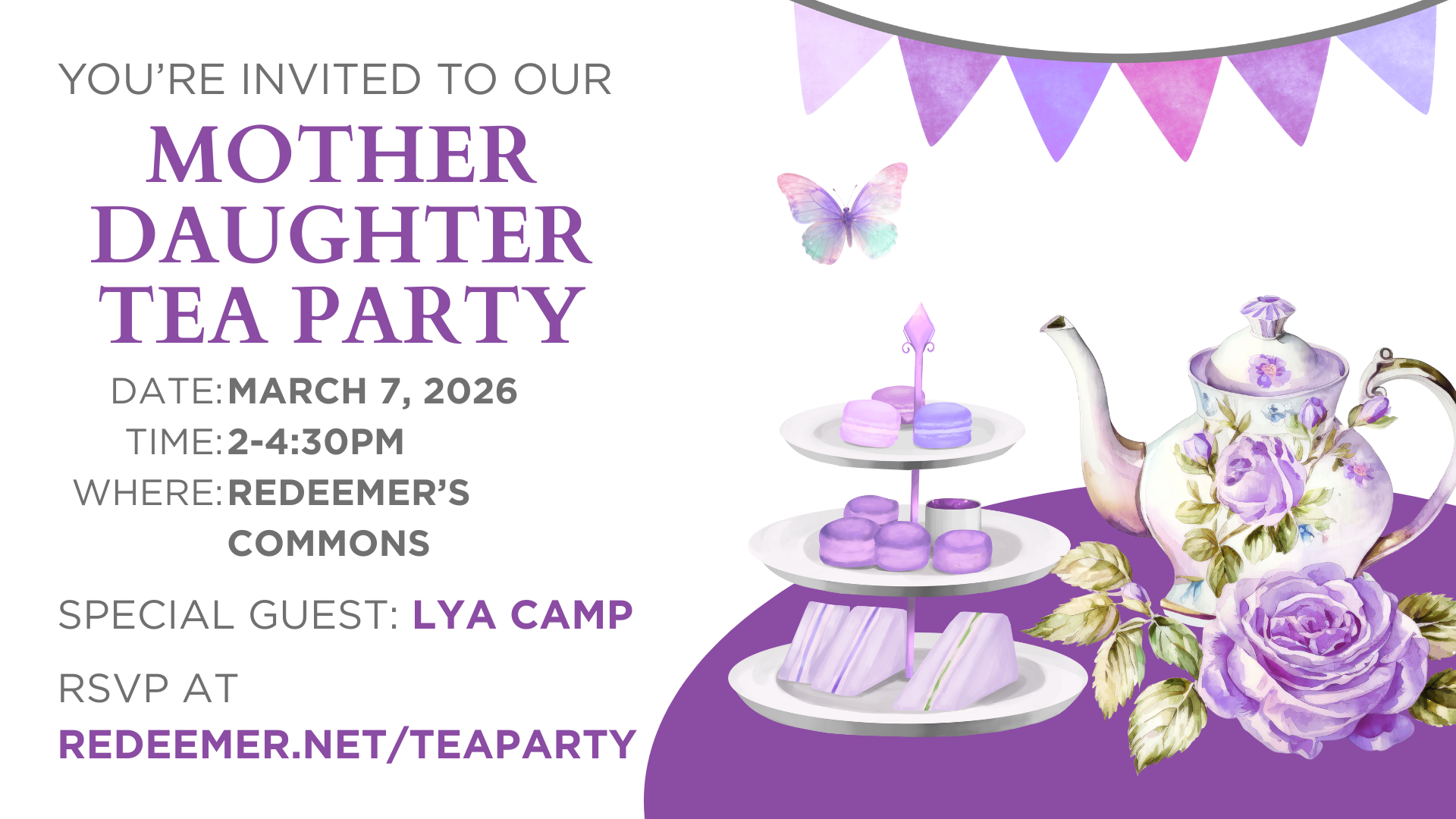 Join us for a charming and elegant gathering celebrating the bond between mothers and daughters. This event will feature delicious tea, light refreshments, delightful conversations, and engaging activities. It's a wonderful opportunity to relax, connect, and create cherished memories together!